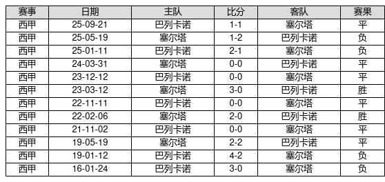 塞尔塔 VS 巴列卡诺两队近10年的交战次数为12场,塞尔塔2胜6平4负,赢球概率为16.7%,平局概率为50.0%,输球概率为33.3%。