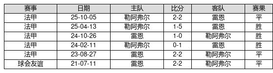 雷恩 VS 勒阿弗尔两队近10年的交战次数为6场,雷恩3胜3平0负,赢球概率为50.0%,平局概率为50.0%,输球概率为0.0%。