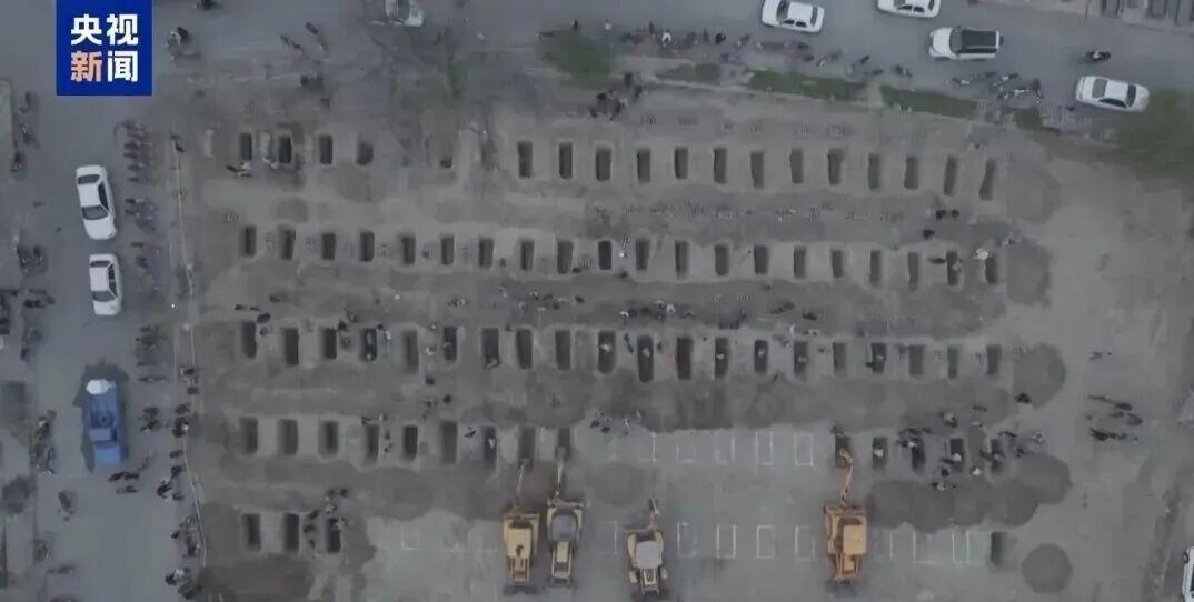 同日,米纳卜的一片空地上,大量工人正在为死者准备墓地。